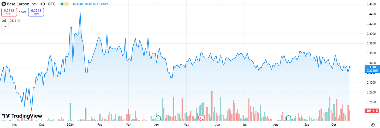 Disclaimer: I’m long Base Carbon. I hold an equity position that was acquired at an average share price of $0.35. I was not compensated by the company to create this post.